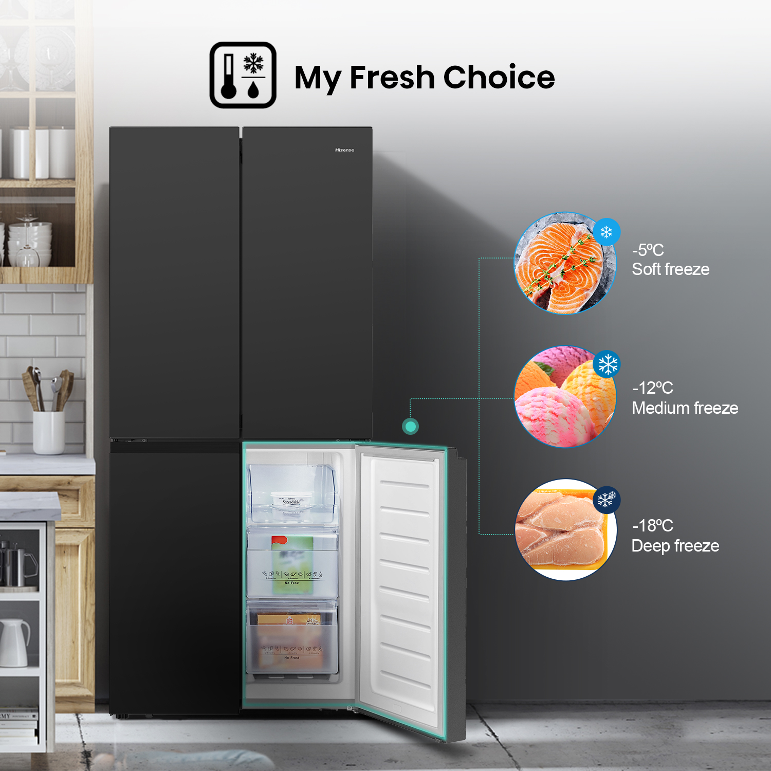 Hisense RQ561N4AB1 Four Door Refrigerator with Electronic Control,No Frost Compressor,Multi Air Flow,Super Freeze, Convertible (Fridge-Freezer) bottom compartment