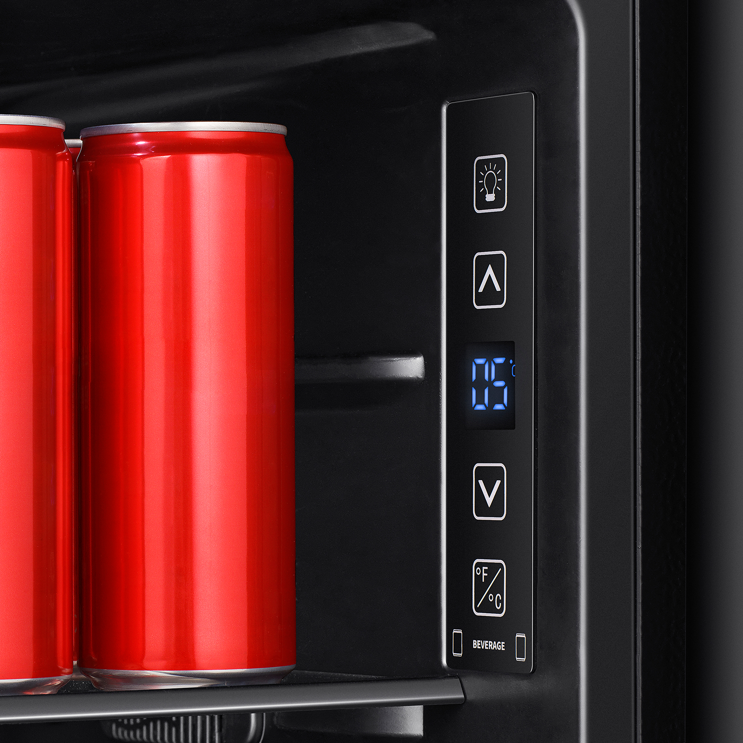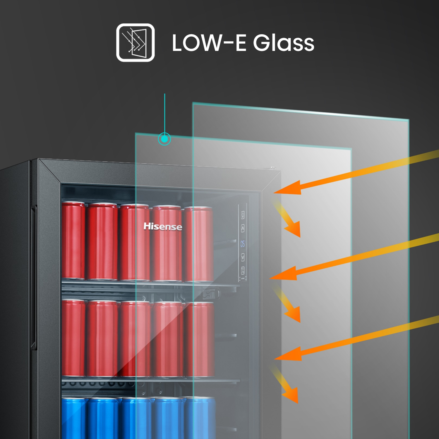 Hisense RBC122N4ASU Beverage Cooler with 69 Cans/113 Bottles,Glass Door,Recessed Handle,Interior Light,Digital Control,Adjustable Shelves