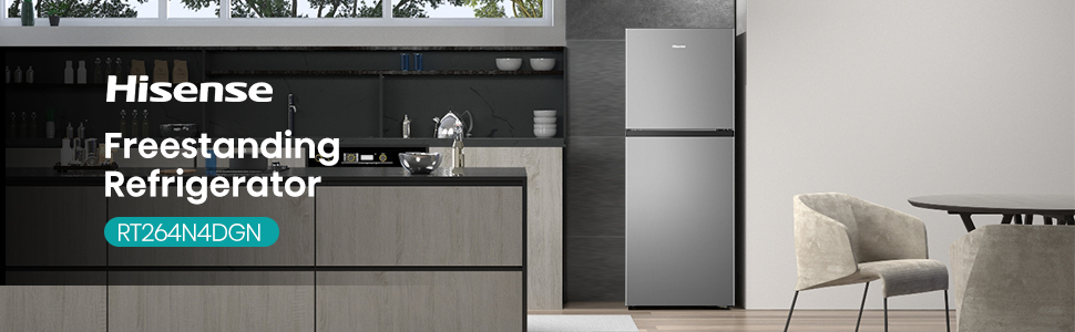 Hisense RT264N4DGN Top Mount Refrigerator with Recessed Handle,LED interior Light, Separate Temperature control for Fridge and Freezer,No Frost with 10 Years Compressor warranty