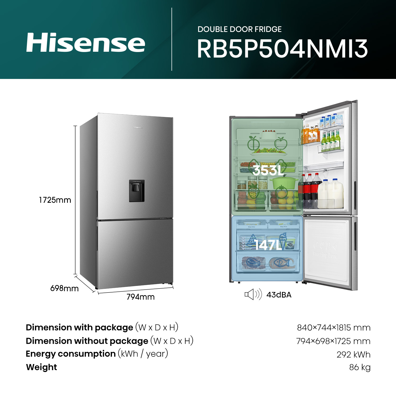 Hisense RT649N4ASU Top Mount Refrigerator