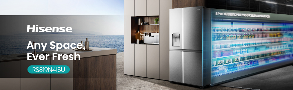 Hisense RS819N4ISU Side by Side refrigerator with WiFi Connectivity,water and Ice Dispenser,Metal Tech Cooling,Ice Crusher,No Frost Inverter compressor