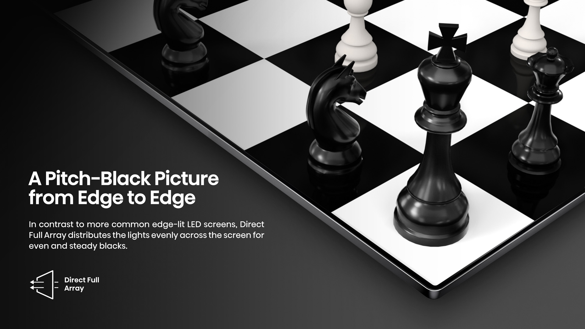 Hisense TVs backed by a Direct Full Array boast a tight grid of individual LEDs that cover the entire back panel. These LEDs allow for precise control of brightness and contrast, resulting in crisp, vivid colors, and deep hypnotizing blacks from edge to edge.