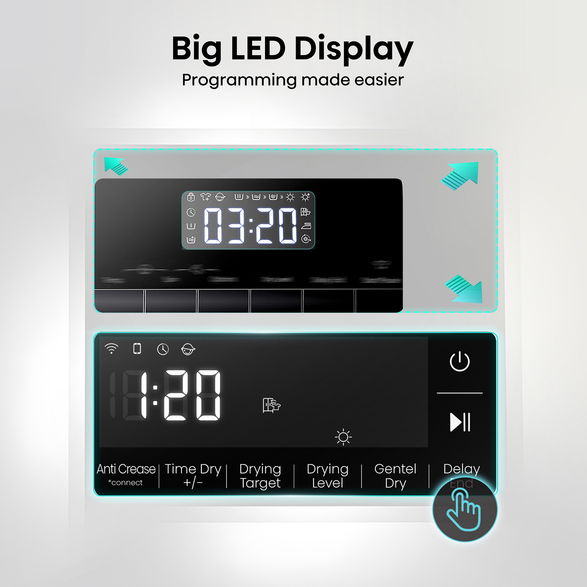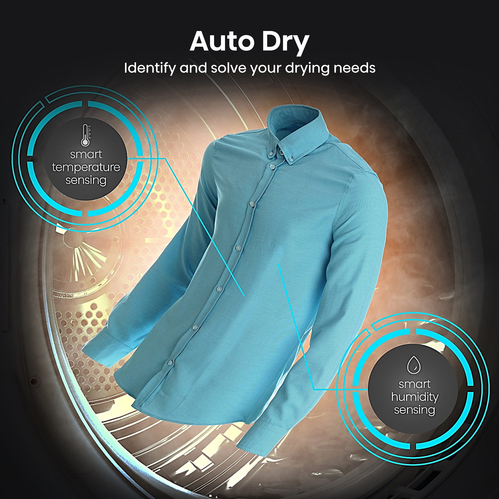 - 【Auto Dry】 Built-in high-precision sensor, precise monitoring of residual water rate and temperature, automatic adjustment of drying time can save time and energy, avoid excessive heat damage to clothing.