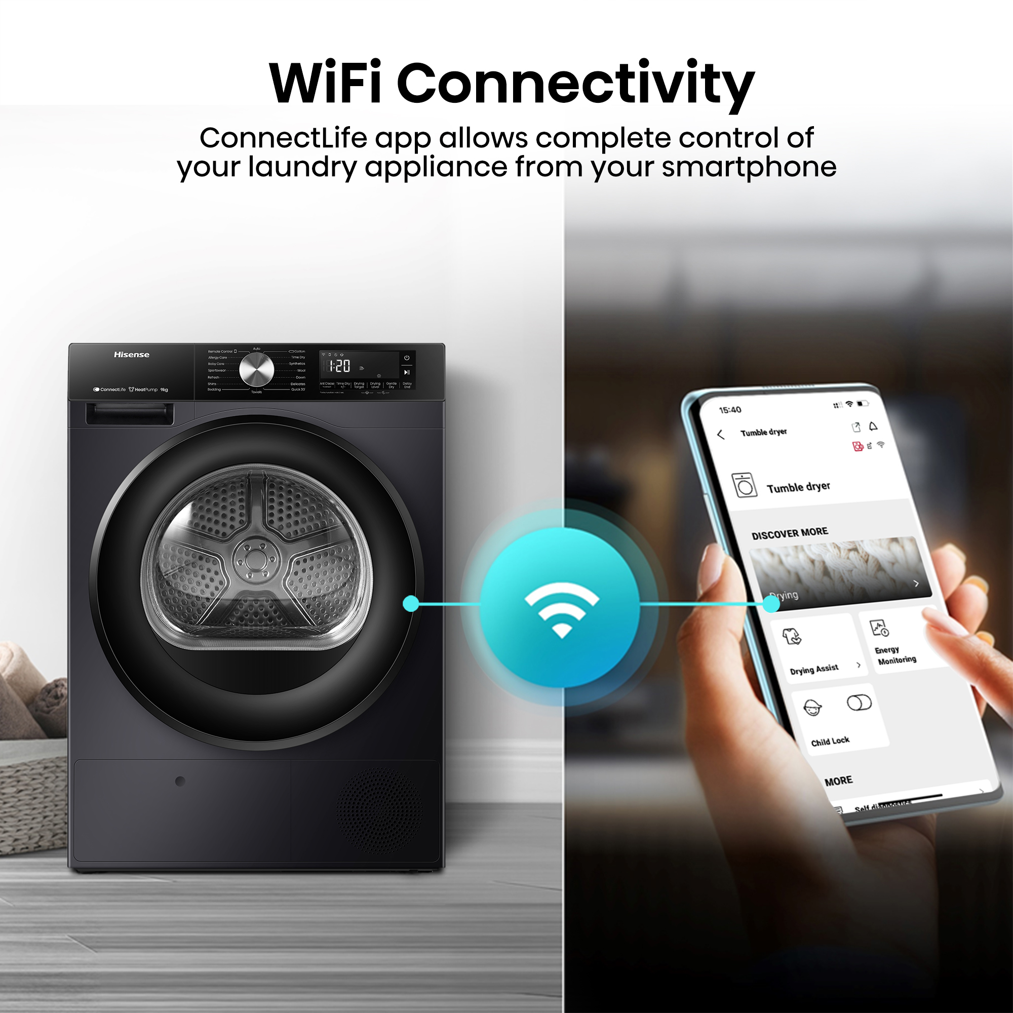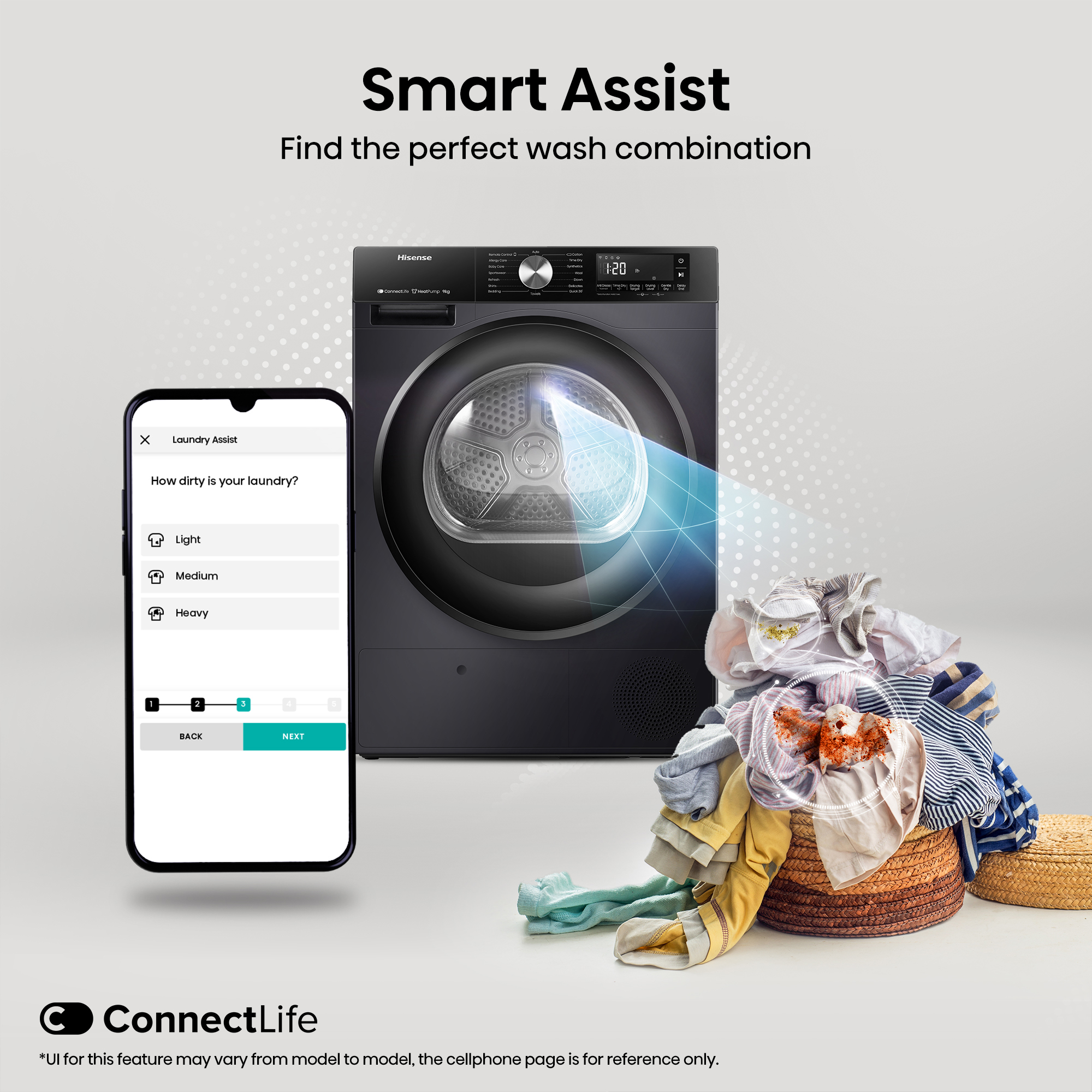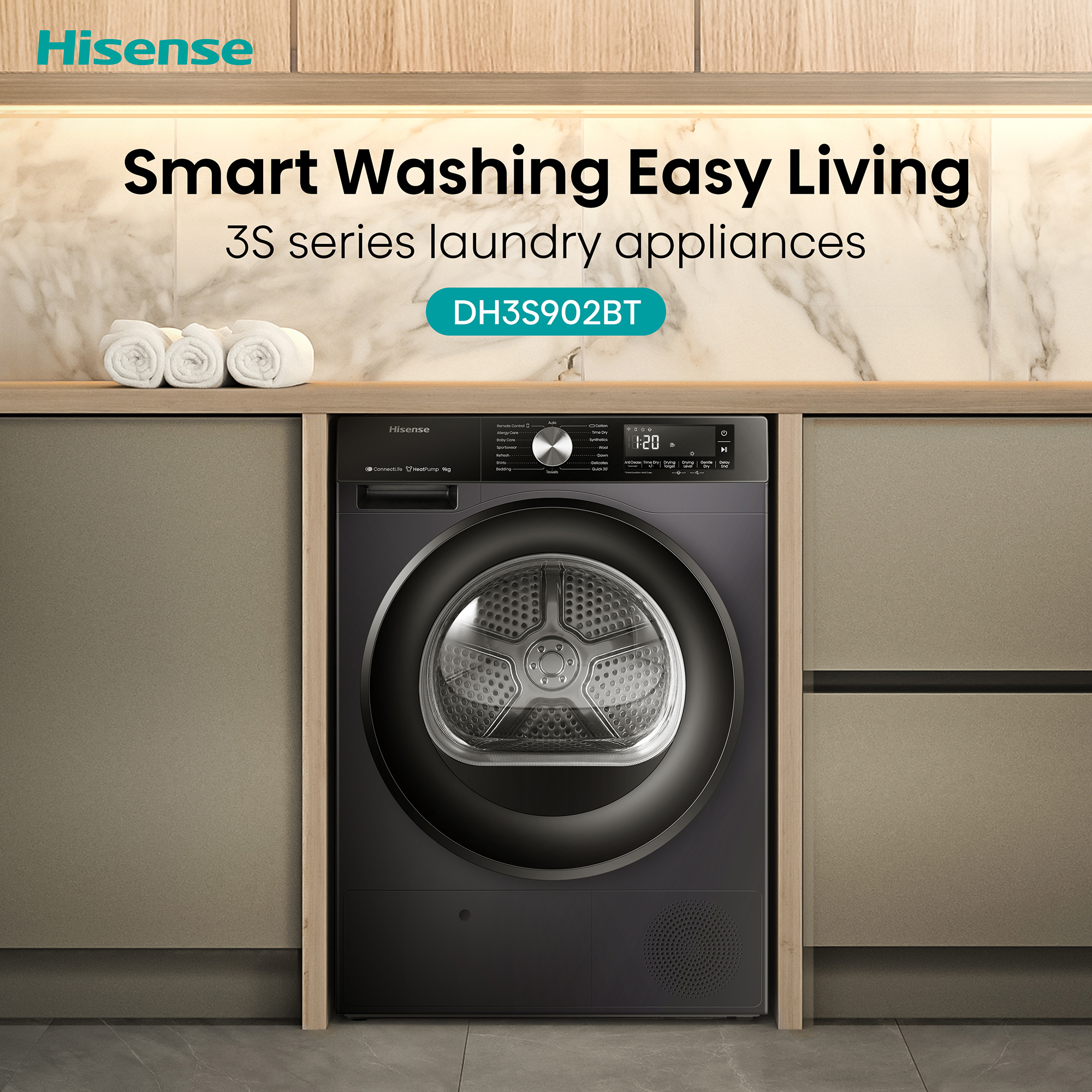 Hisense 9 Kg Heat Pump Dryer,15 Programs, AI Dry, Allergy Care, Anti Crease, Durable Inverter Motor, Quick Wash, Drum Clean – DH3S902BT