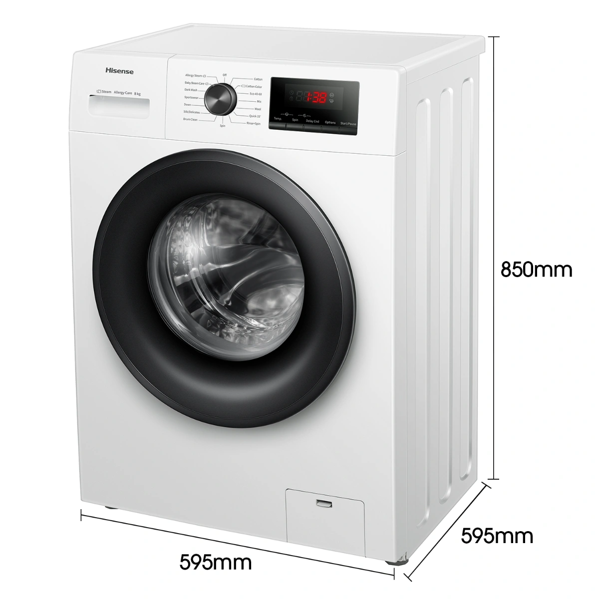 Hisense WFPV8012EM 8Kg Front Load washing machine with 1200RPM,Quick wash,Allergy steam care,Pause & Add,Child lock