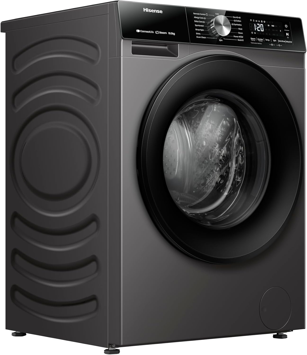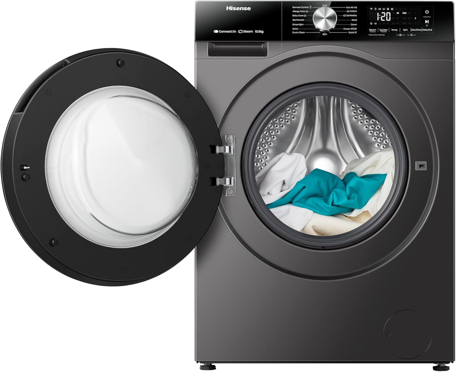 Hisense WF3S1043BT 3S Series 10 Kg Washing Machine with Inverter Motor, Smart WiFi, AI Super Wash Technology, 1400 RPM, Smart Energy Monitoring, 15 Programs, Titanium Grey